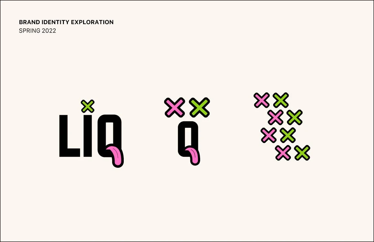 Through colorful and distinct branding the goal is to become one of the first places that come to mind when someone is in the mood for a sweet treat or an activity to do. The word ‘liquor’ has been shortened to Liq with the tail of the ‘q’ being transformed into a tongue.